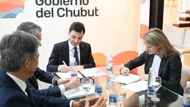 La firma de la carta de intención se llevó a cabo en la Casa del Chubut en Buenos Aires con la directora general de la empresa, Catherine Remy. Participaron también el vicegobernador de Chubut, Gustavo Menna, y el subsecretario de Energías Renovables de la provincia, Nicolás Cittadini.