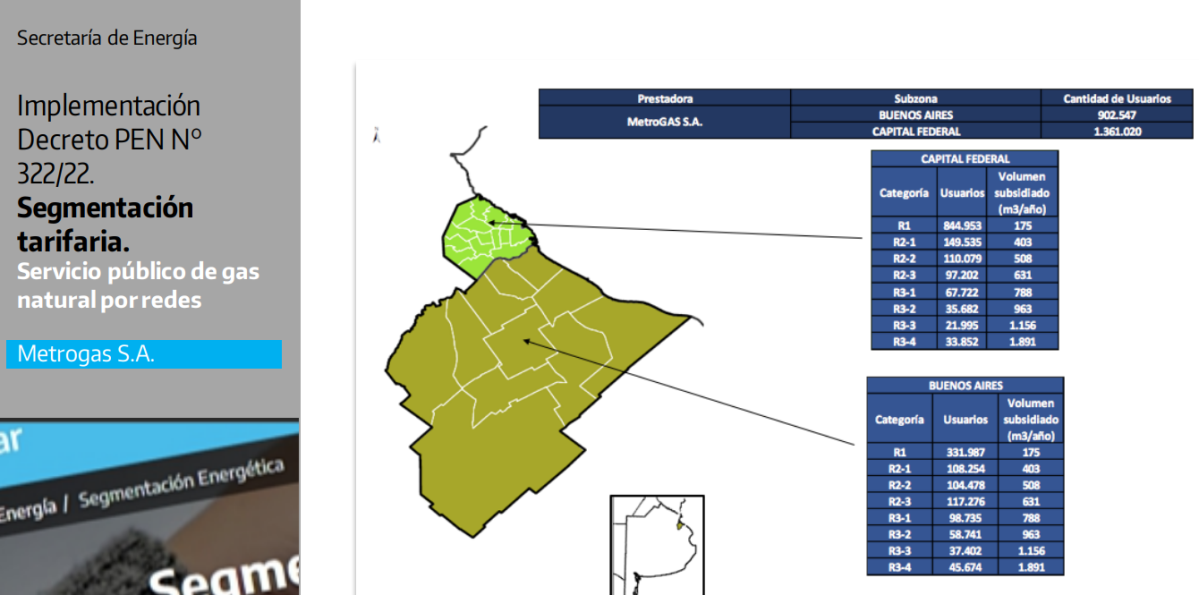 En el caso del gas natural el subsecretario de Hidrocarburos, Federico Bernal, precisó que se subsidiará hasta el 70% del umbral de cada categoría de usuario en cada subzona del país. Y mostró una serie de gráficas sobre cómo serán esos techos.