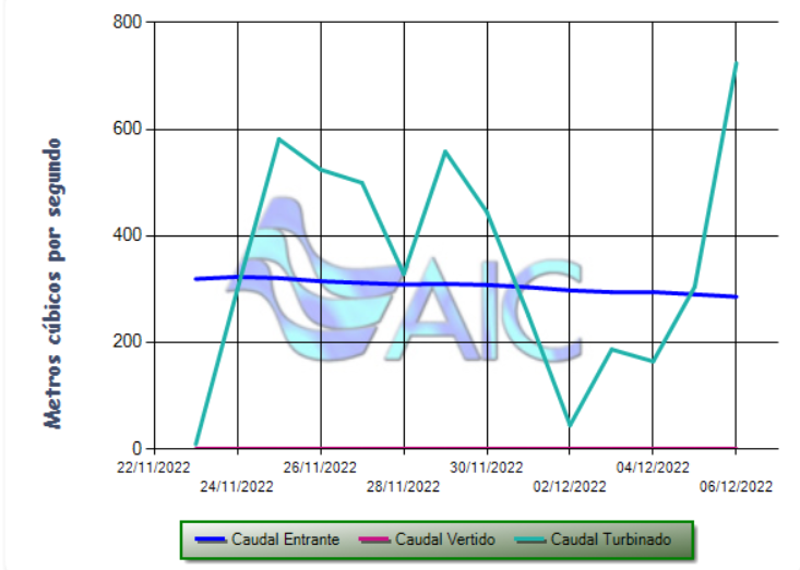 Mientras que el pico de turbinado se dio a la dos de la tarde, en coincidencia con el récord de demanda, cuando se llegó a una generación de 4.037 MW desde las represas de la zona.