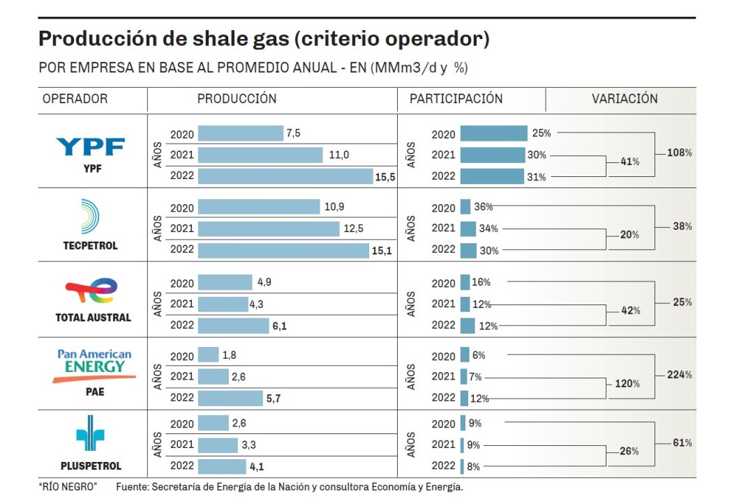 En 2020 sus extracciones del gas de Vaca Muerta representaron el 25% sobre el total producido. Un año después promediaron el 30% y el año pasado escaló a 31% de todo el volumen extraído.