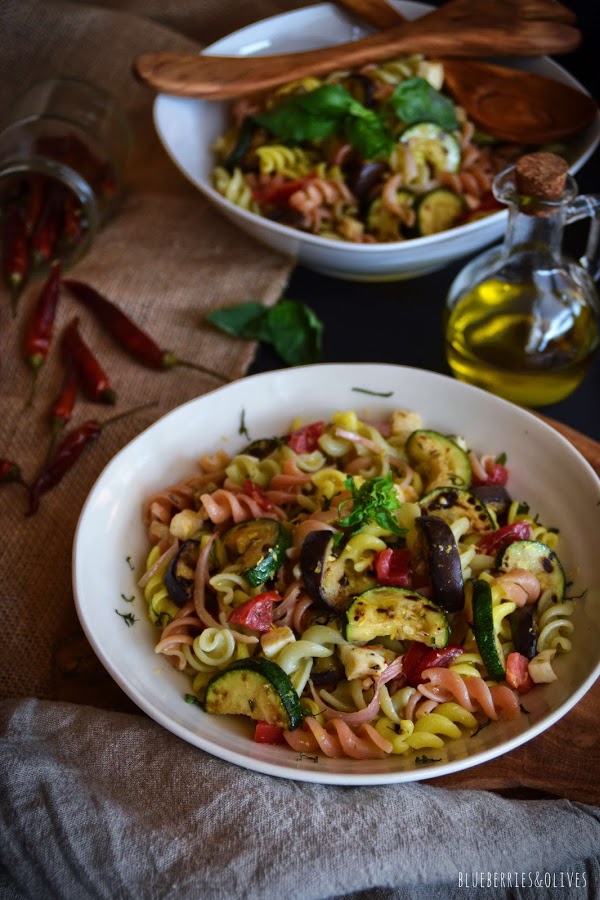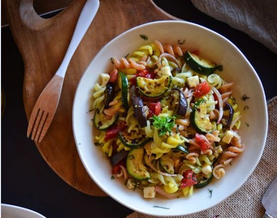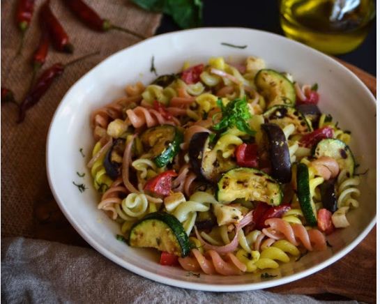 Ensalada de pasta y verduras asadas