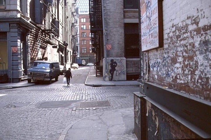 Arriba, Walker Street & Cortlandt Alley, en 1982. La célebre esquina donde se tomó la foto de tapa. Abajo, Walker Street & Cortlandt Alley, en 2023, ahora rebautizada oficialmente Charly García corner.