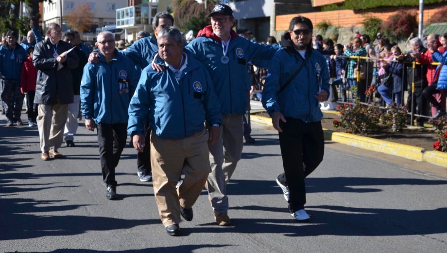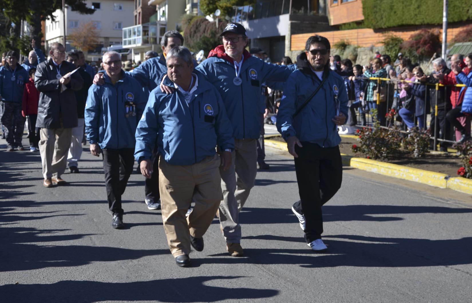 “Hemos hecho nuestra vida en Bariloche. No podíamos no estar acá presentes. Además, es un orgullo para nuestros nietos que seguramente, desfilarán el día de mañana”, definió Raúl Navarrete, del centro “La unión de los abuelos” del barrio Unión, mientras desfilaba hacia el palco de autoridades ubicado en el puerto San Carlos.