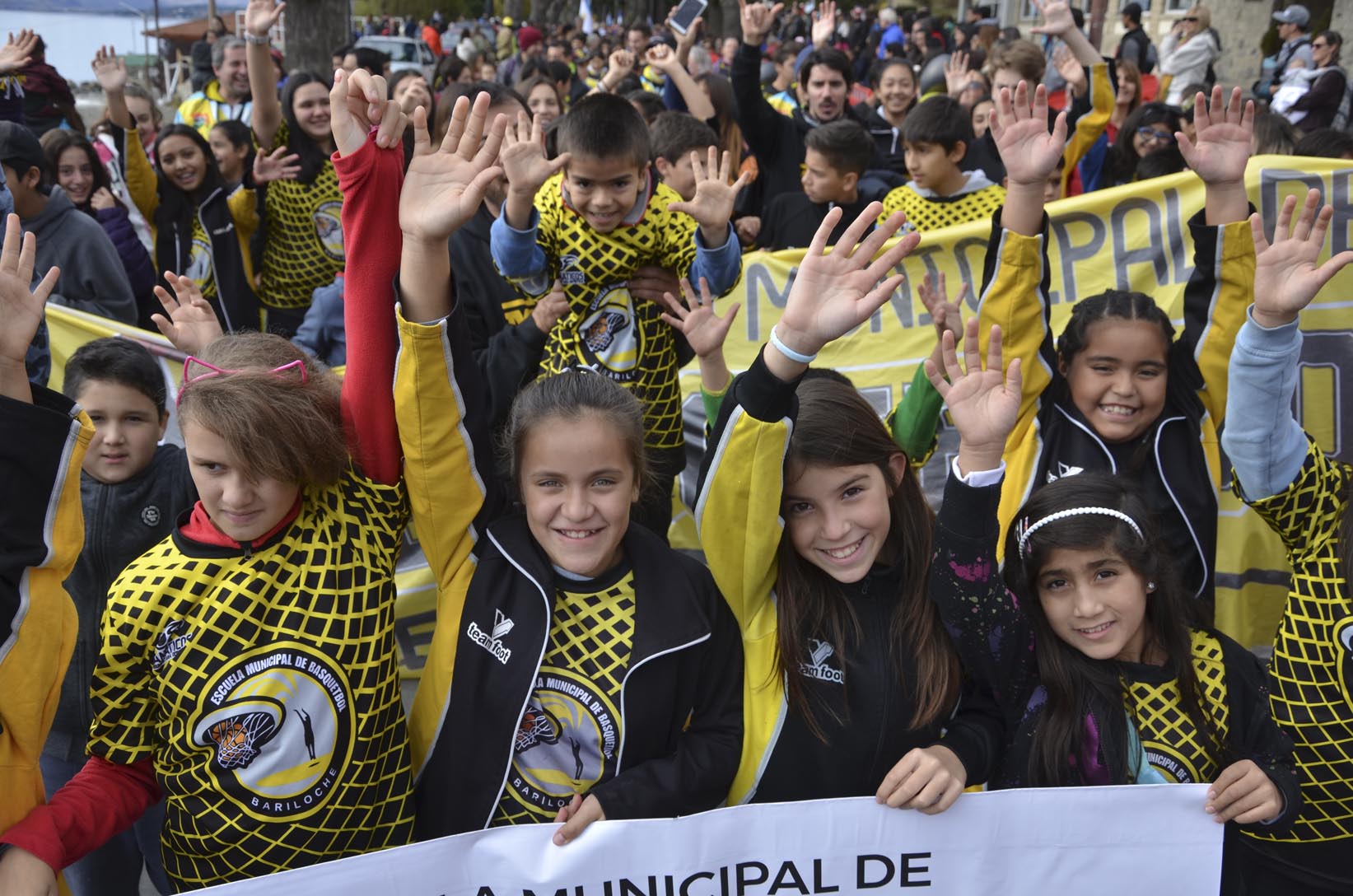 Una vez más, como desde hace tantos años, Bariloche celebró sus 117 años con el tradicional desfile pero esta vez, ya no en la calle Mitre u Onelli, sino por la avenida Costanera con un paisaje cordillerano de fondo.