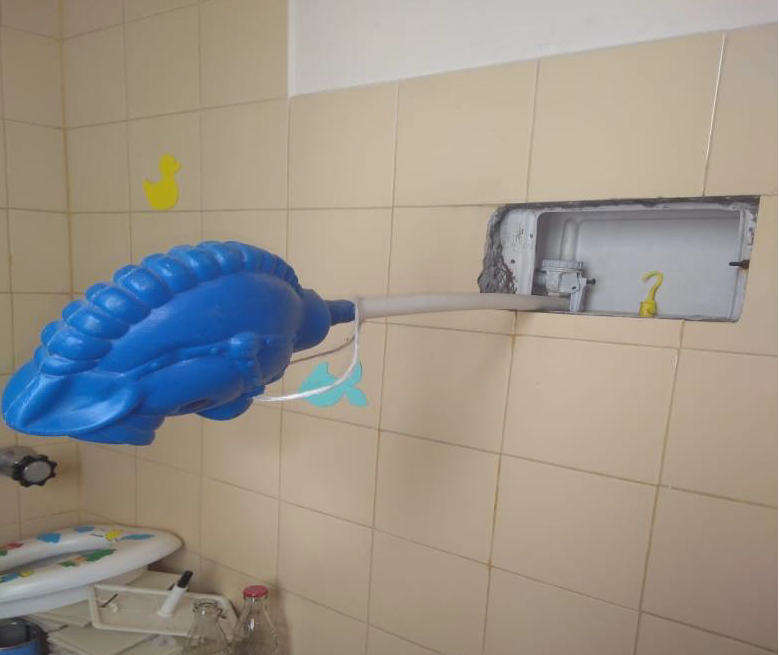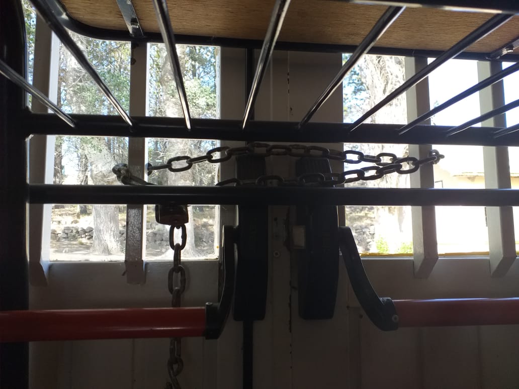 Roncati puntualizó en esta escuela hay aguas servidas que provienen de la vivienda de dirección, la única salida de emergencia está cerrada con una mesa y cadenas, y el flotante del baño de jardín de infantes está sostenido con un “caballito de plástico”.