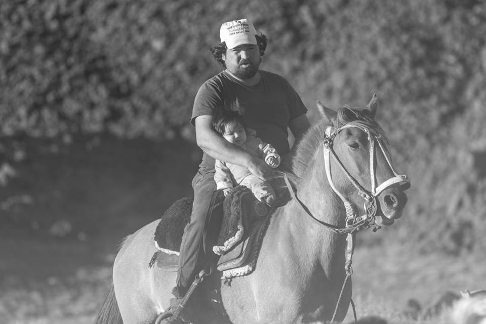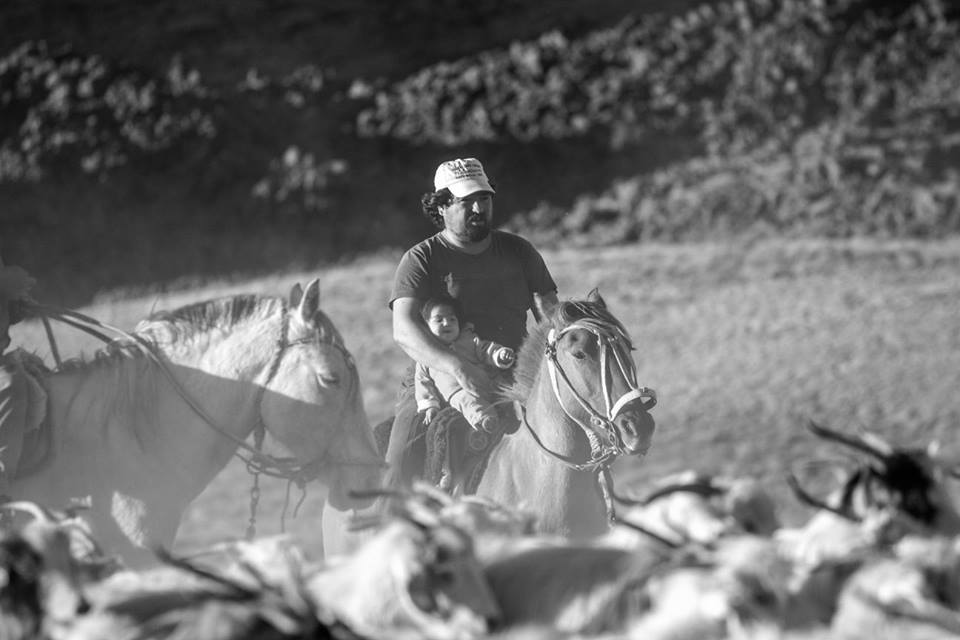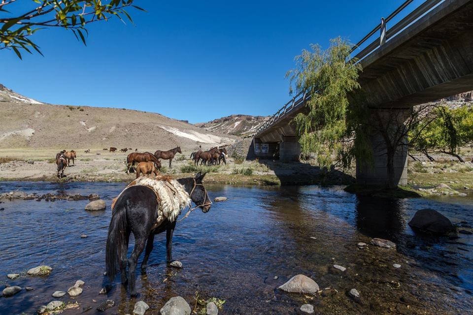 Algo parecido hace el ingenioso Correa en el Tromen. Cuando lleva a su hijita, de pocos meses, en su caballo para acompañarlo en la faena diaria de arrear chivos y caballos, de recorrer sus campos…la impregna de los olores, los ruidos, los colores, las texturas, las voces y rumores, de la firmeza del Tromen y su laguna o de la belleza del paisaje que le tocó en suerte. Con toda la riqueza sensorial de estos importantes datos, la sensualidad de su cerebro será la encargada de iluminar el mundo que ahora comienza a imaginar. Porque claro, el cerebro, no tiene acceso al mundo exterior sino a través de los sentidos, no sabe lo que pasa afuera de la hermética carcaza de su cráneo. Y entonces, ella empieza reconocer a su gente, a su entorno y a percibir la propia historia que otro puente comunicó a su padre con su abuelo y a su abuelo con su bisabuelo y a su bisabuelo con la larga historia de la cultura trashumante que este otoño ha vuelto a llenar los senderos, los caminos y las rutas del norte neuquino en su trashumancia a la invernada.