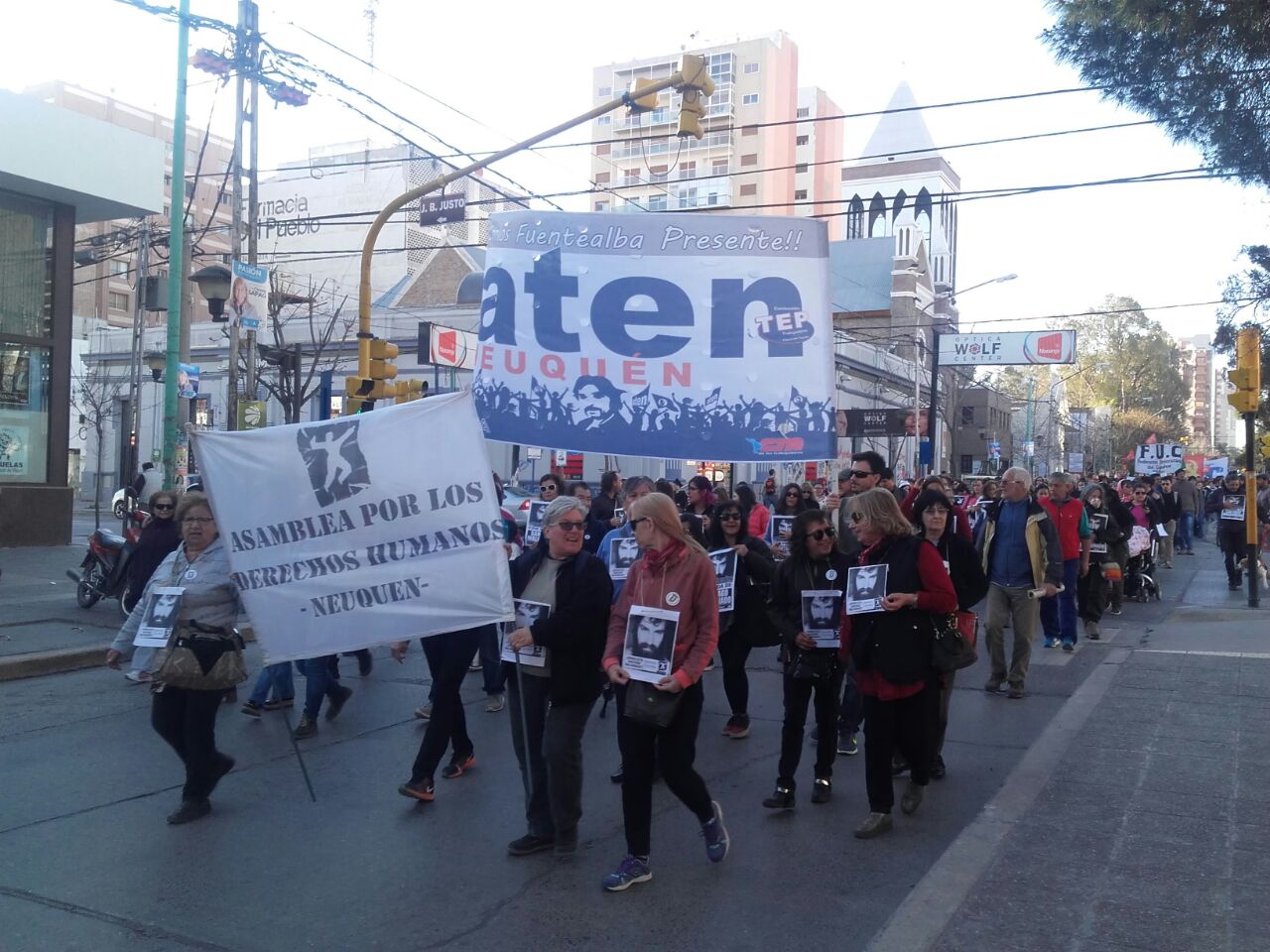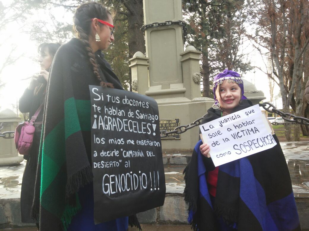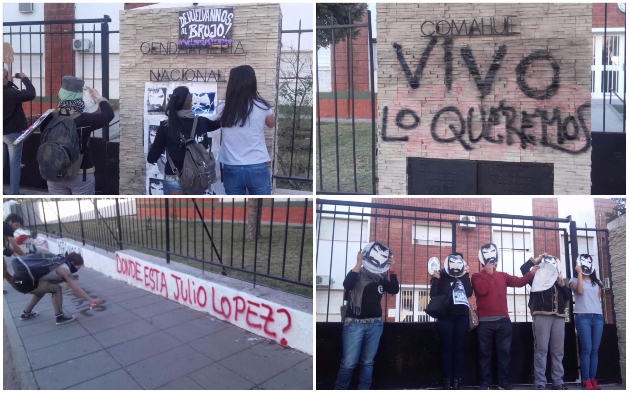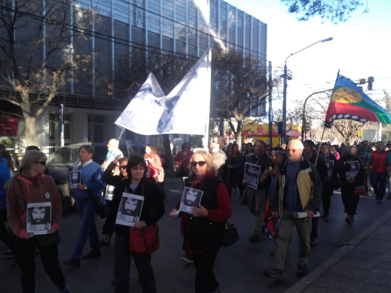 Cabe aclarar que había dos columnas. En un sector la Confederación Mapuche y Aten provincial. En otro Aten capital y grupos que exigían la liberación de Jones Huala. Ese grupo pasó fuera de la sede de Gendarmería y dejó escraches a modo de protesta.