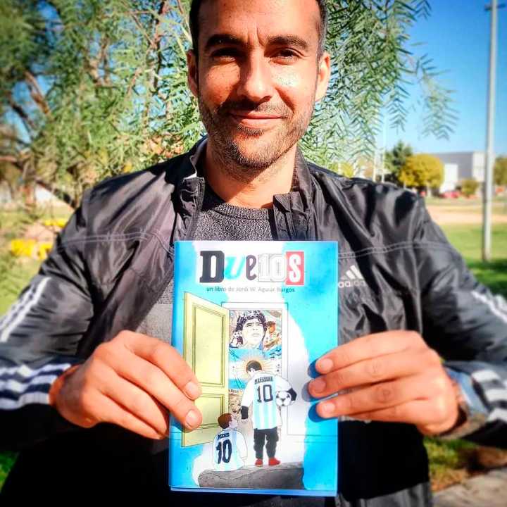 Due10s” habla de duelos, sí, pero ese 10 incrustado allí pone el foco de manera insoslayable en un duelo en particular: el de la muerte de Diego Maradona. Porque, si algo sabe el mundo, es que de quién hablamos cuando hablamos de (un) 10. “Due10s” es el primer texto ficcional largo del periodista, comunicador y escritor valenciano radicado en Neuquén Jordi Aguiar Burgos (1981), quien hasta entonces había cultivado el cuento corto en libros como “Fuerte al medio (2019), entre otras publicaciones.