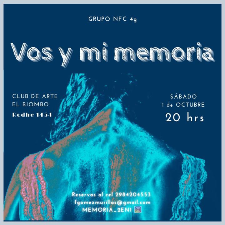 Una nueva propuesta de danza propone copar el escenario del Club de Arte "El Biombo" en Roca. Este fin de semana llega "Vos y mi memoria", una puesta en escena materializada por bailarines locales y el apoyo del Instituto Nacional de Teatro (INT).