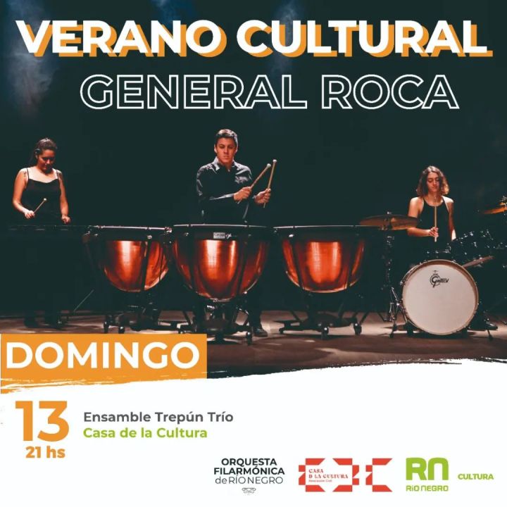 En un evento gratuito, Trepún Trío se presentará en la Sala II de Casa de la Cultura de Roca. A partir de las 21, el ensamble de percusión -que forma parte de la filarmónica de Río Negro- brindará un concierto que buscará recuperar las obras realizadas durante el 2021, dando comienzo a sus próximas presentaciones.