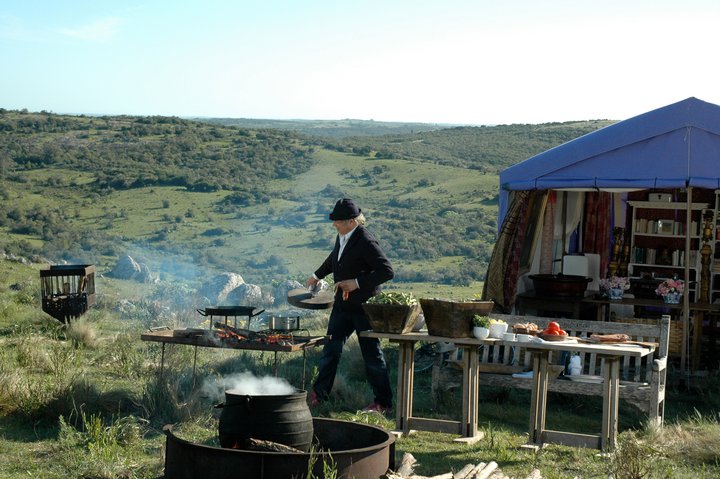 Mallmann, con sus ollas y fuegos, en Garzón.