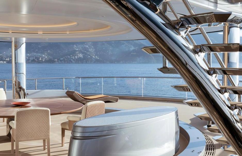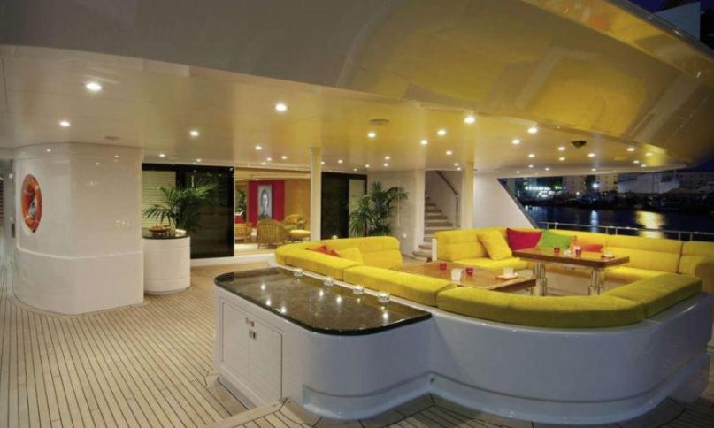 El barco tiene 98 metros de eslora y pesa más de dos toneladas. Posee una cancha de paddle y otra de tenis, de medidas reglamentarias. Puede alojar con comodidad a 16 invitados, según informó el diario británico The Sun.