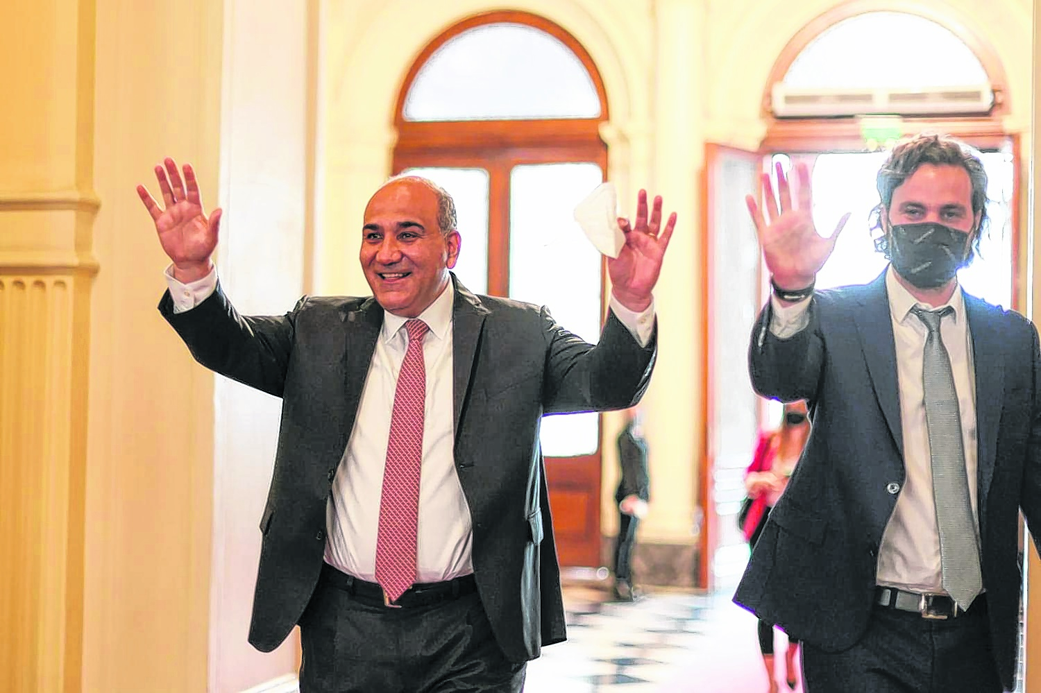 Manzur: sonrisa sin barbijo después del gesto al PJ tradicional.