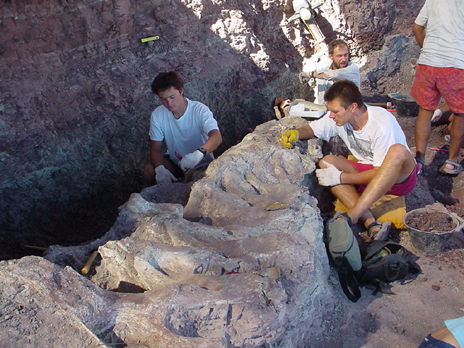“Es una zona que no se ha trabajado nunca. Por eso se hace primero una exploración, y si hay fósiles se hace una excavación”, comentó Calvo, que además en el lugar dirige el centro Paleontológico Lago Los Barreales.