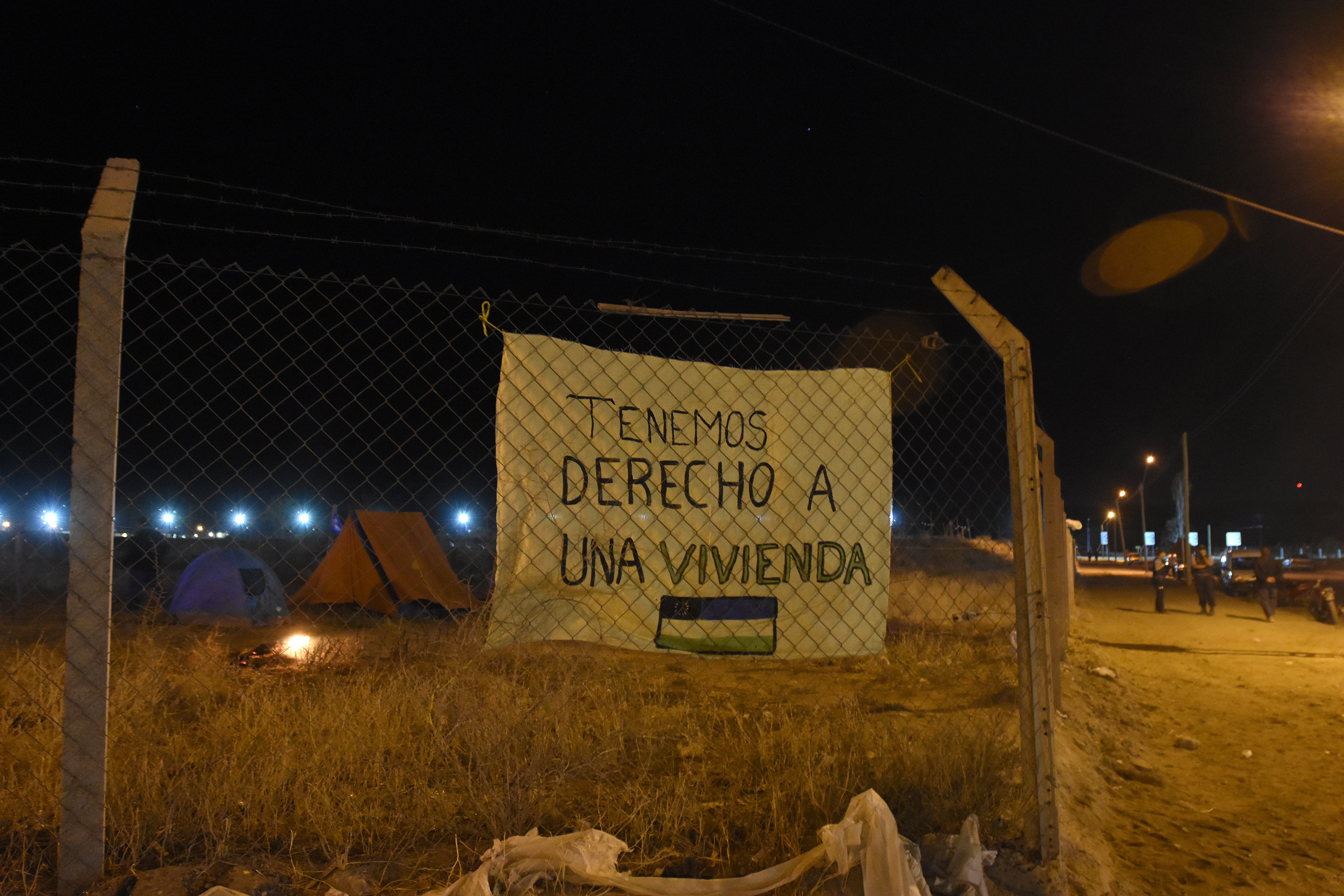 Se identificaron como hijos del barrio Tiro Federal, cuyo reclamo se centra en una solución habitacional. La instalación se hizo a pocas cuadras del CET N°33, cuyo edificio será inaugurado en las próximas horas.