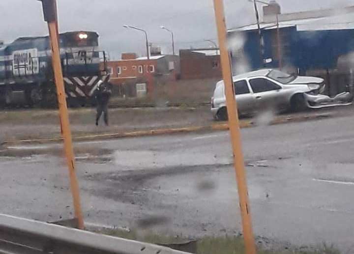 Una locomotora chocó a un auto esta mañana en uno de los accesos a la ciudad de Fernández Oro, frente a la estación de servicio de YPF.