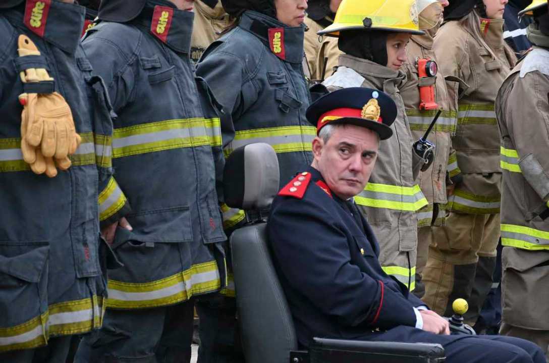 Con una temperatura bajo cero, los bomberos de los cuatro destacamentos de la ciudad, familiares y amigos celebraron su día en el Centro Cívico, bajo el sonar constante de las sirenas.