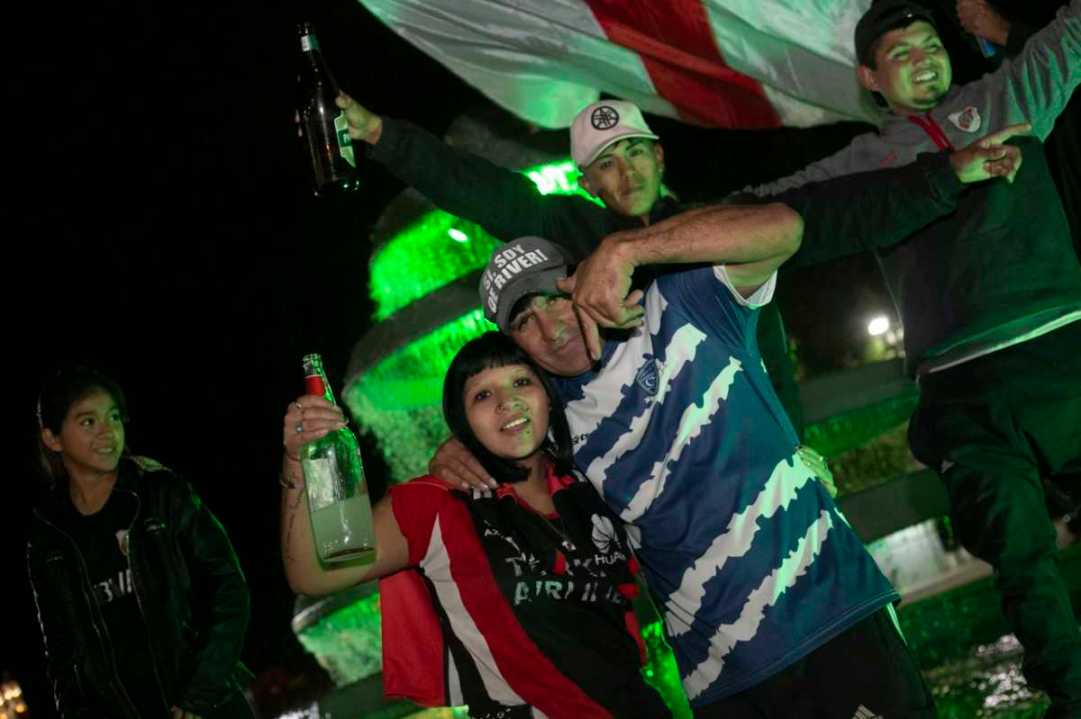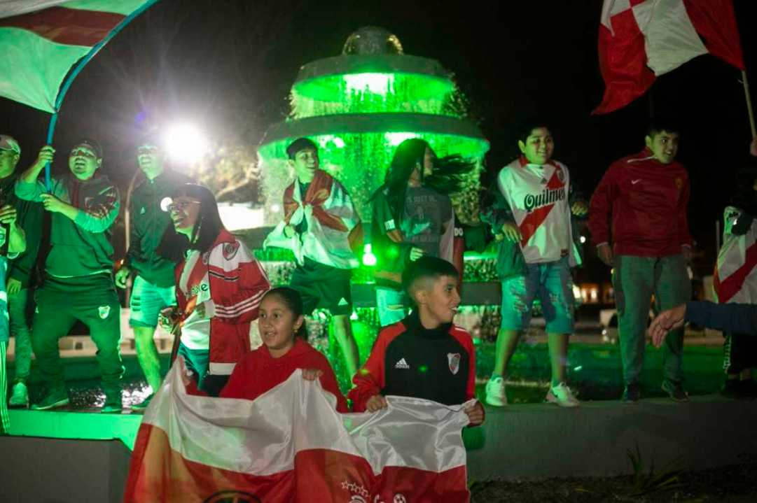 Superclásico: A pesar del frío, los hinchas de River festejaron en la fuente Pucará de Viedma