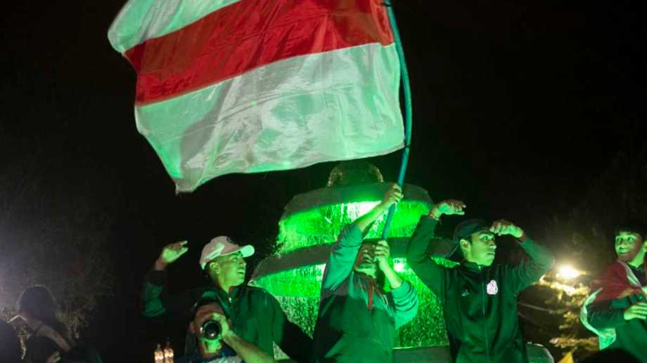 Superclásico: A pesar del frío, los hinchas de River festejaron en la fuente Pucará de Viedma