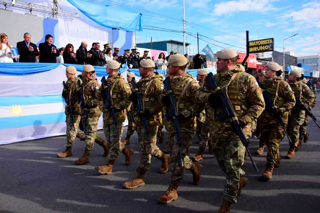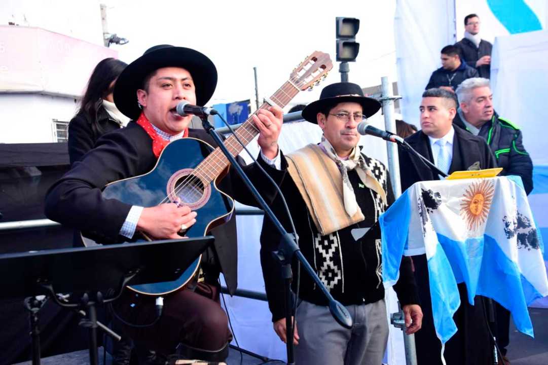 A la altura del monumento a los Caídos de Malvinas, se montó un palco central donde se ubicaron las autoridades municipales y provinciales, encabezadas por el intendente capitalino Mariano Gaido y el gobernador Rolando Figueroa, recientemente llegado de Tucumán donde participó del Pacto de Mayo convocado por el presidente Javier Milei.