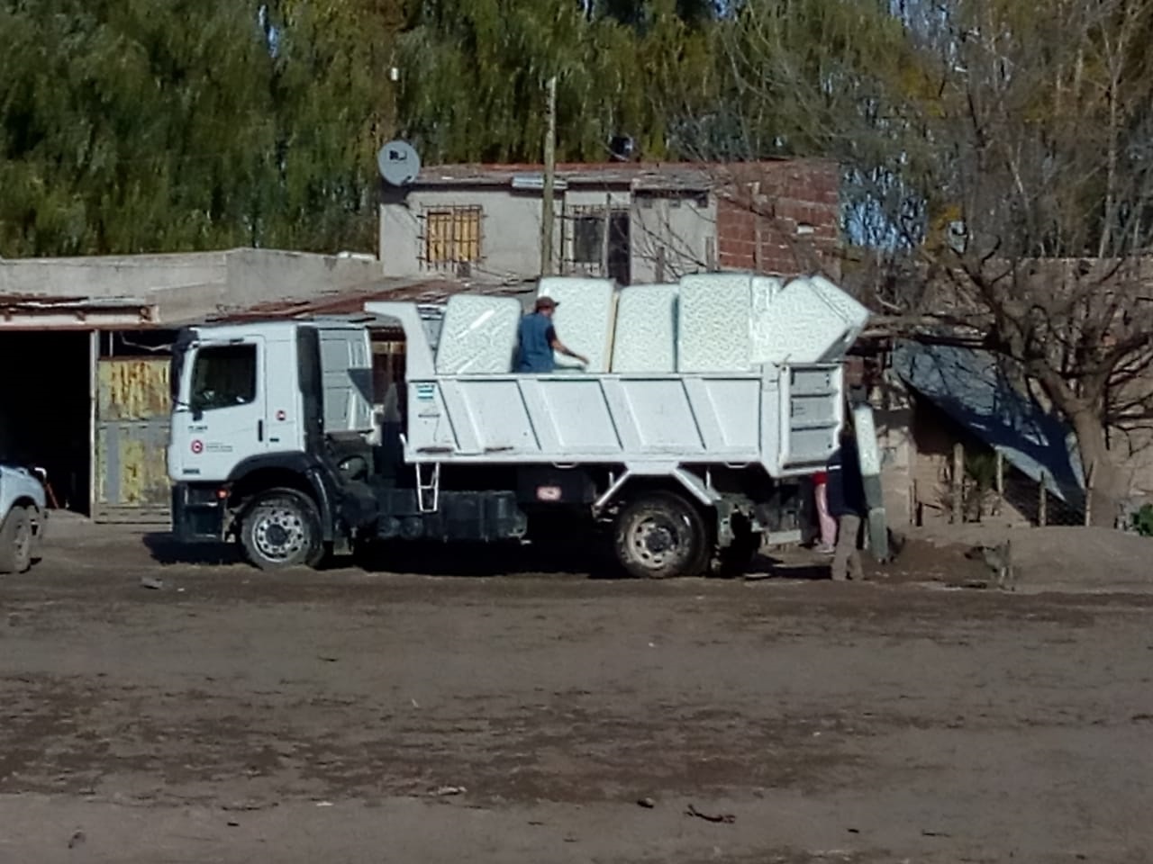 El mismo día, pocas horas después de que se viralicen los videos y audios de Tortoriello, una persona que vive en el barrio Labraña hizo lo propio con unas fotos en las que se ve a un camión con el logo municipal, repartiendo «camas y colchones, de una plaza y de dos plazas», dice el audio.