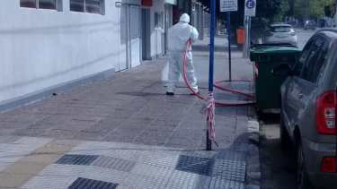 Con una hidrolavadora se desinfectaron veredas y fachadas de consultorios, sitios de diálisis, clínicas privadas, hospitales públicos, farmacias, garitas de colectivos, cajeros automáticos y ni siquiera las comisarías se salvaron del agua a presión con desinfectante.