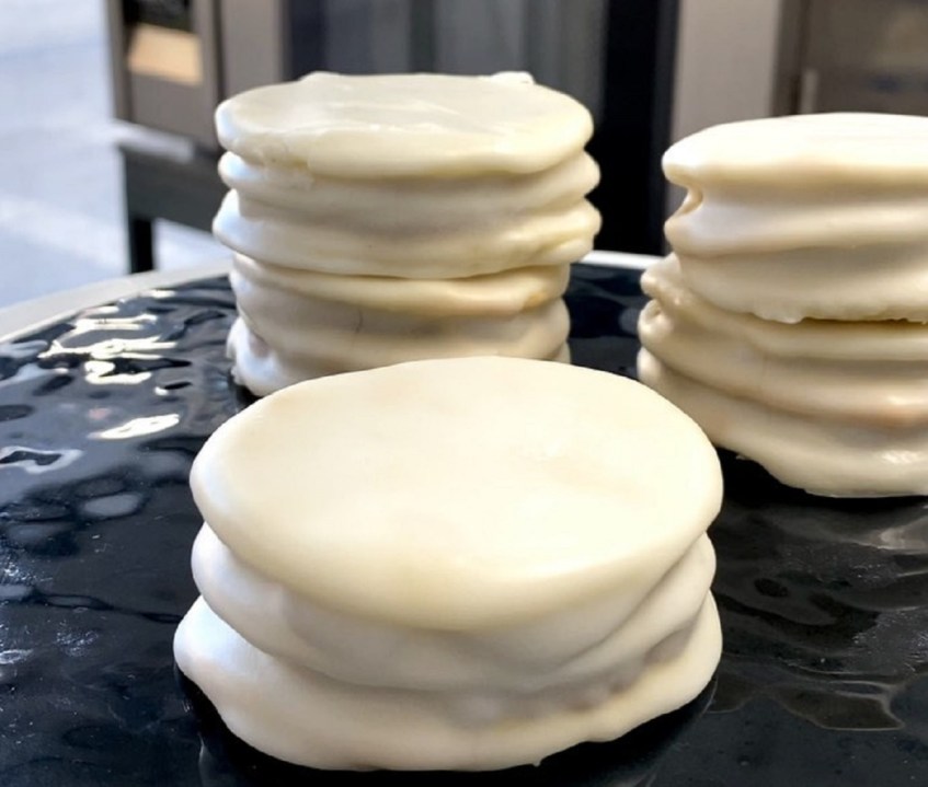 Rellenar con dulce de leche formando un alfajorcito triple. De tres capas de masa, dos de dulce de leche.