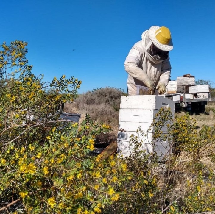 “Lo urbano se sigue comiendo el área rural, avanza la frontera de lo urbano sobre lo rural. La actividad petrolera también hace que queden pocos espacios aptos para cultivos. Hoy día los mejores terrenos con las mejores tierras, habiéndolos sistematizado, emparejado, forestado y regado, hoy todas esas superficies con condiciones para lo agropecuario se la están tapando de cemento. Entonces acá también los polinizadores sufren esas condiciones. Otra cuestión a la que se tienen que enfrentar, que es un desafío para la humanidad toda es el cambio climático. Las condiciones desfavorables que estamos teniendo en las últimas décadas hace que tengamos las primaveras demasiado frías o inestables con abruptos cambios de temperaturas y las plantas se desorientan sufren, los humanos y las abejas también se estresan, porque lo poco que habían acarreado se lo tienen que consumir los días que no pueden salir al campo. Como tienen que interrumpir la recolección de néctar y polen eso va a dañar el ciclo habitual de la colonia.”