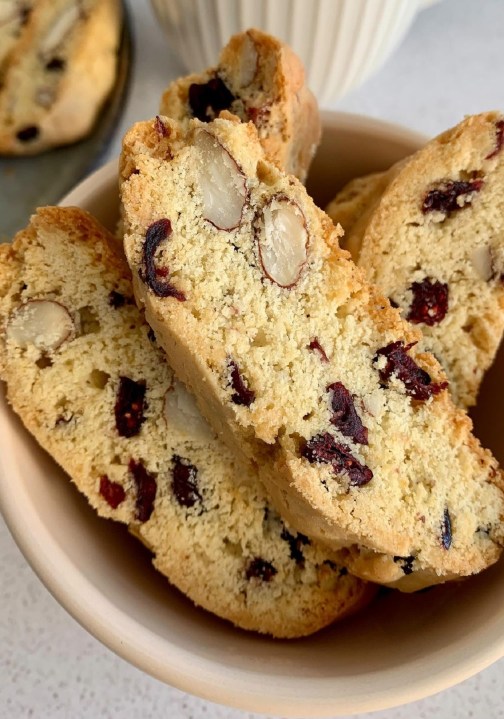 Los biscottis o cantuccinis son crocantes y dulces, típicas de Italia de la región de la Toscana. Su nombre hace referencia a sus dos cocciones. Generalmente contienen almendras, pero se pueden hacer distintas variantes.