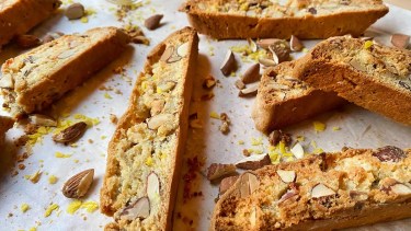 Los biscottis o cantuccinis son crocantes y dulces, típicas de Italia de la región de la Toscana. Su nombre hace referencia a sus dos cocciones. Generalmente contienen almendras, pero se pueden hacer distintas variantes.