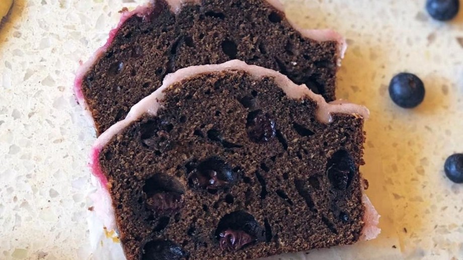Para el glaseado, mezclar 7 cucharadas soperas de azúcar impalpable con pulpa de frutillas (para hacer la pulpa calenté en el microondas 2 frutillas con un poquito de agua hasta que se ablandaron y después las pisé con tenedor). Combinar esta mezcla con el azúcar impalpable hasta lograr una consistencia espesa. Agregar por encima del budín una vez que ya enfrió.