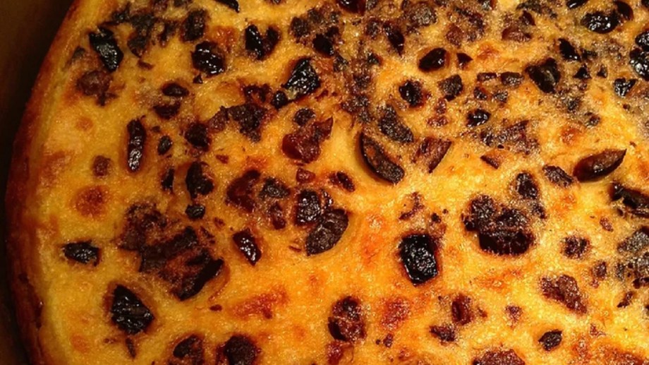 Colocar sobre la superficie las aceitunas negras descarozadas y picadas. Cocinar en horno a 250º C aproximadamente 25 minutos hasta que solidifique y esté bien dorada. ¡Listo! A disfrutar, fría o caliente.
