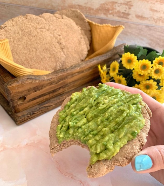 Estirar con ayuda de un palo de amasar en una superficie plana dándole forma de pan pita y llevar al horno por 10 minutos a 180° C. Retirar de horno y listo.