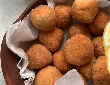 Volcar en una placa tapada con papel film y reservar la masa en la heladera unas horas hasta que esté firme. Formar las croquetas con las manos, de aproximadamente 2 cm de diámetro. Pasar por harina, después por huevo batido con leche, sal y pimienta, luego por pan rallado, otra vez huevo y otra, pan rallado.