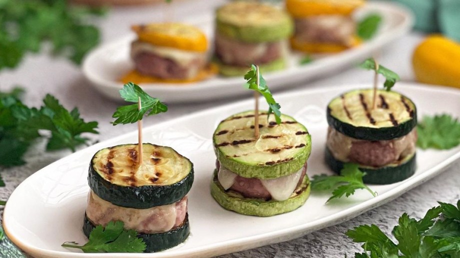 Pasamos las rodajas de zucchinis por la plancha con un poco de sal y pimienta. Luego armamos nuestras burger poniendo una rodaja de zucchini, encima la hamburguesa y tapamos con otra otra rodaja de zucchini y a disfrutar!!!