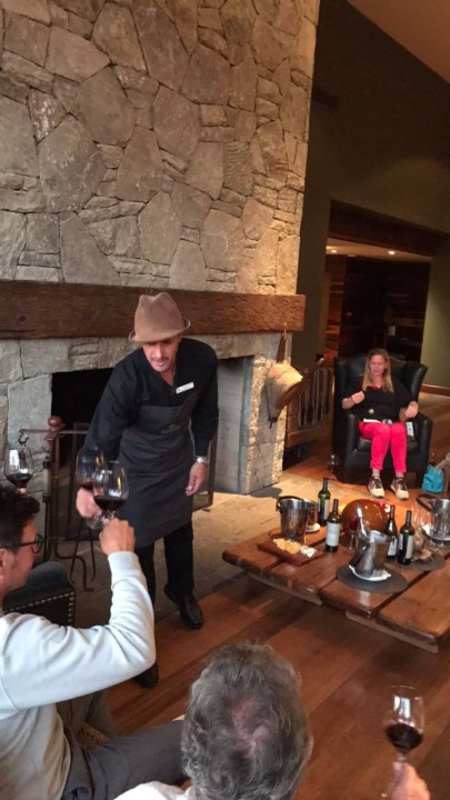 En sus catas, en San Martín de los Andes, habla a los amantes del vino también de lugares, viñedos, productores, cosechadores, paisajes, viajes, fiestas, encuentros y celebraciones.