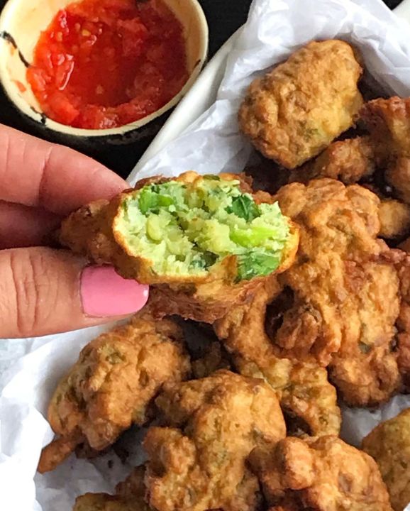 4- En una sartén u ollita, colocar abundante aceite y calentar muy bien para freír los buñuelos. La temperatura del aceite debe ser de unos 180° y es súper importante para que no absorba aceite y queden sequitas y crocantes. Con la ayuda de cuchara y agregando la preparación de a poco para freírlas. Una vez doradas de ambos lados se retiran y colocan sobre papel absorbente. Y acompañar con alguna salsita. Yo rallé un tomate natural y le agregué una salsita picante.