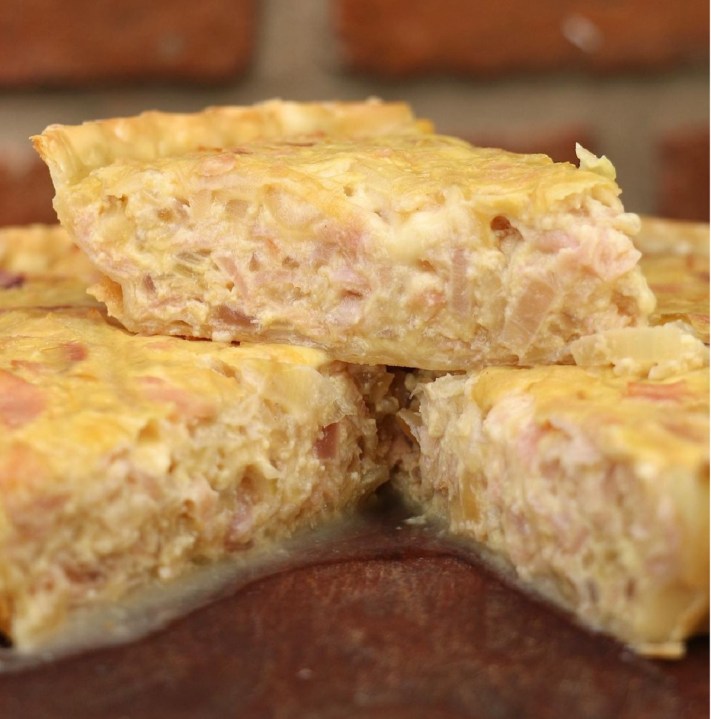 Tarta de cebollas, jamón y queso