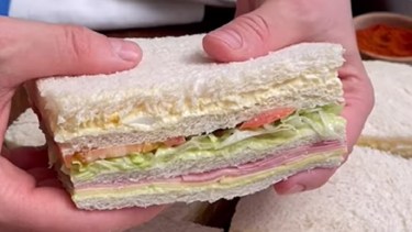 3. Montamos nuestro sandwich triple, alternando capas de jamón, queso, tomate, lechuga, huevo y siempre untando con mayonesa de palta.