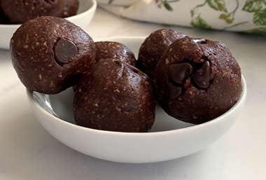 Juntar en un bol la harina de almendras, la mantequilla de maní, la miel, la esencia de vainilla, el cacao en polvo, el endulzante y la leche. Mezclar todo hasta formar una masa homogénea. Añadir los chips de chocolate y seguir mezclando. Formar las trufas con las manos y listo ya se pueden comer.