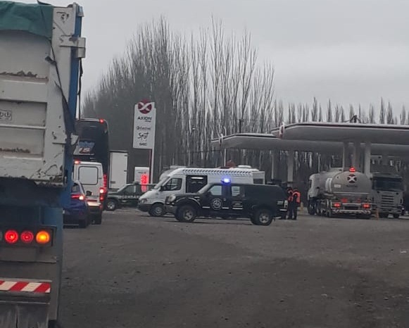 El procedimiento que comenzó desde temprano, se lleva a cabo cerca de la estación de servicio del gremio camioneros.
