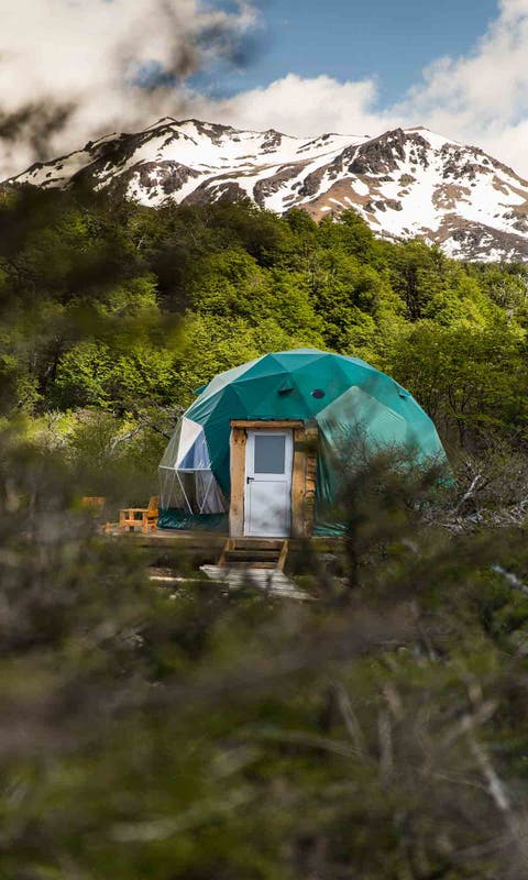 Adventure Domes fue uno de los pioneros locales con una ubicación privilegiada frente al glaciar Perito Moreno, entre el Lago Roca y el Brazo Rico, en El Calafate. Son ocho domos de 12 metros cuadrados distribuidos en un bosque nativo de lengas. Están construidos sobre decks de madera para aislarlos del suelo, con la premisa de no dejar ni un rastro.