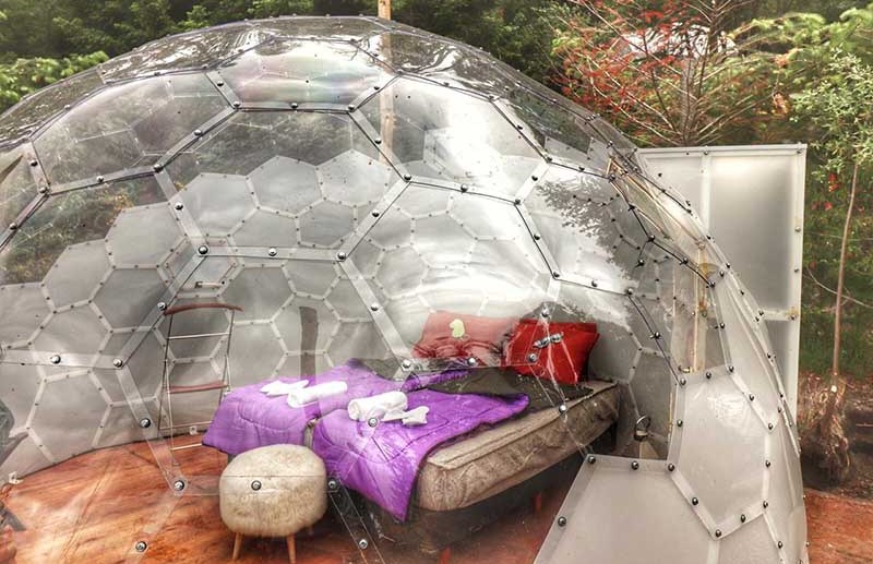 El camping boutique está pensado para el amante del campamento y la vida al aire libre que no tiene ganas o tiempo de cargar con todo el equipamientos de acampe, o para aquellos que en su juventud vivieron esta experiencia y ya no se animan a prescindir de una buena cama. Los domos permiten acampar con glamour y se traduce en precios bastante más elevados que los de un camping convencional. A no confundirse con su estética agreste y su rusticidad: no son baratos.