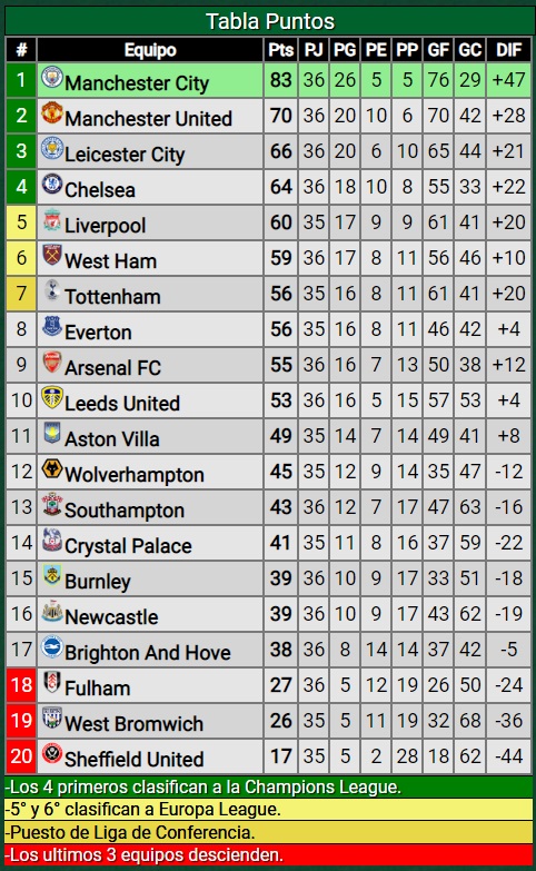 Hoy goleó 4-0 a Burnley como visitante, un rival que también cumplió el primer objetivo de mantenerse en la categoría, tiene 39 puntos y está en el puesto 15.