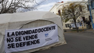 Conflicto docente en Río Negro: Unter instaló una carpa frente a la Casa de Gobierno en Viedma