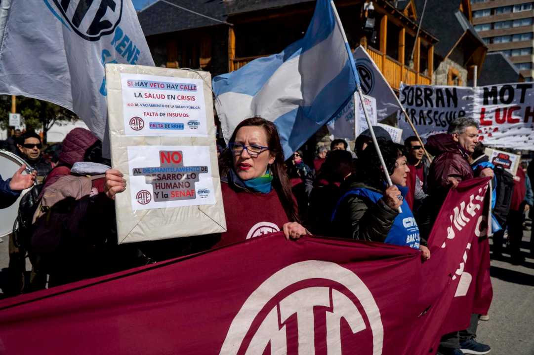 Los sindicatos estatales y privados de Bariloche, agrupados en las dos CTA y la CGT, se movilizaron hoy en rechazo al veto de la ley de movilidad jubilatoria que se debate en la Cámara de Diputados y sumaron reclamos sectoriales por la crisis de salud, contra el control de ausentismo a los docentes y el financiamiento a universidades.