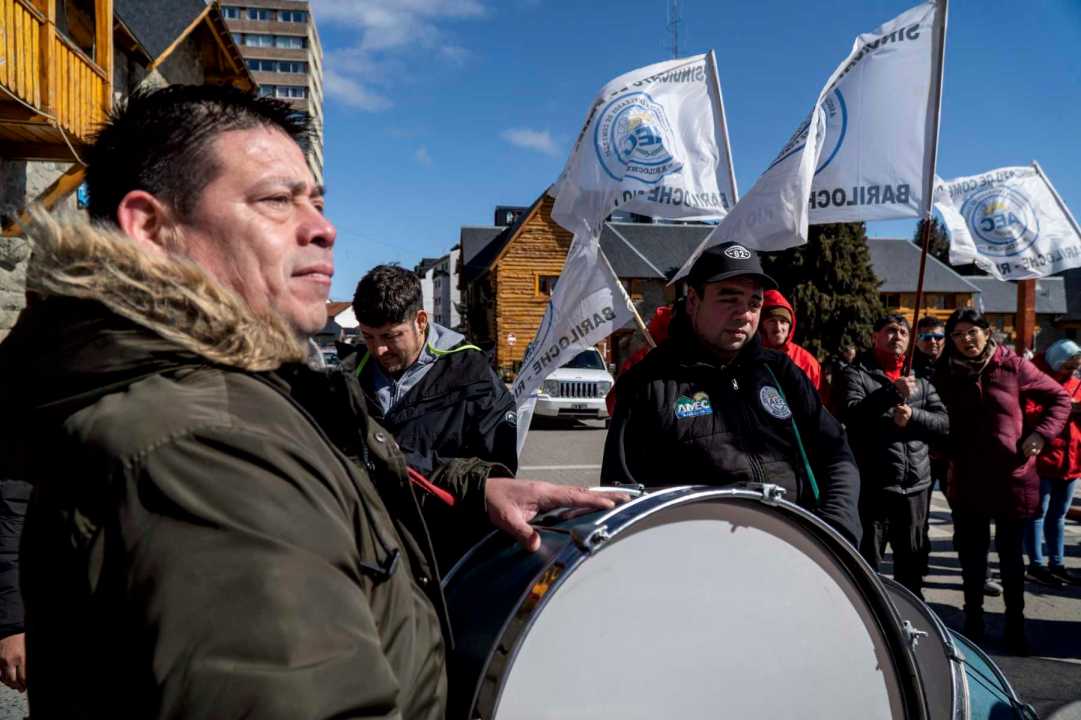 Banderas de la CTA Autónoma, CTA de los Trabajadores, CGT Zona Andina, además de los gremios Unter, ATE, Asspur, Apinta, universitarios, AEC y partidos de izquierda completan la protesta que tuvo una instancia de conferencia de prensa previa y una movilización por las calles comandada por ATE. Finalmente todos confluyeron frente a la torre del municipio en el Centro Cívico.
