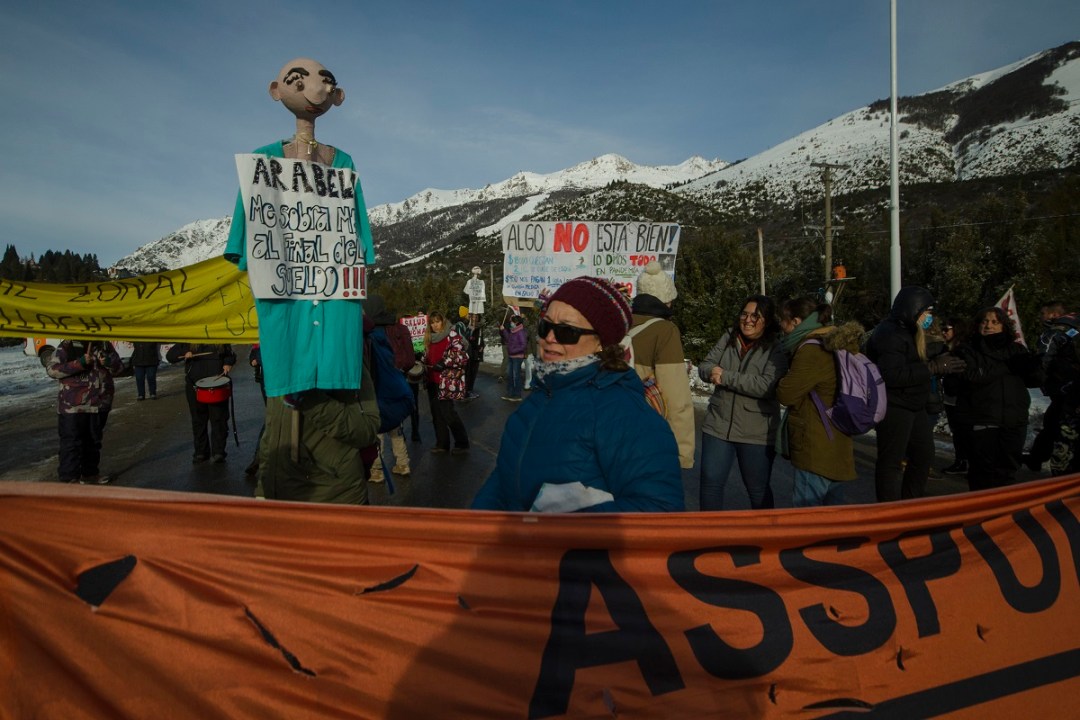 Marcos Erlinksman, un turista de Mar del Plata, esperaba en su auto. «No se ni por qué es el reclamo, pero cualquier protesta por mejoras del salario está bien. Molesta un poco porque ayer no pude esquiar porque el cerro estaba cerrado y hoy, sigo esperando, pero bueno, paciencia», dijo.