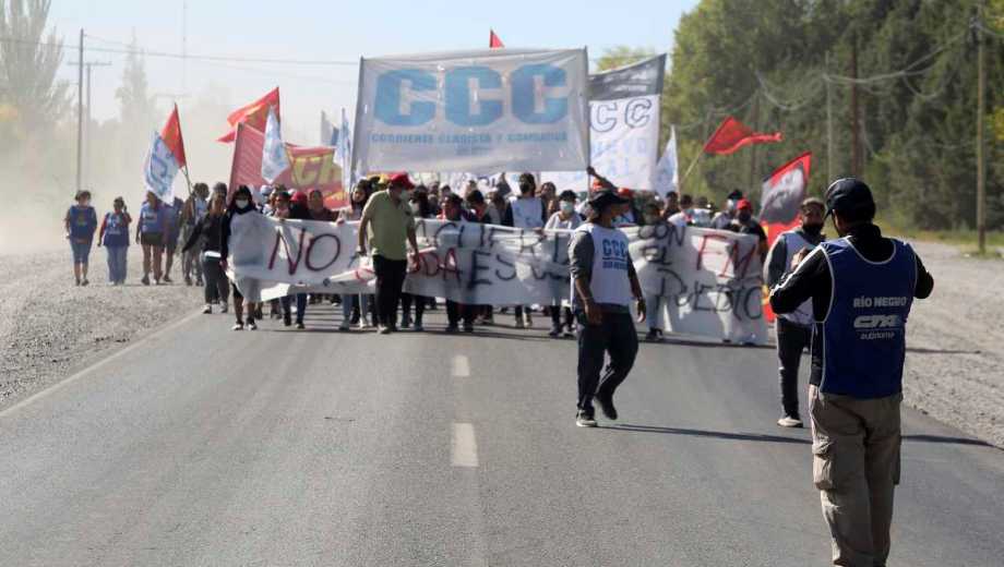 Marcha de organizaciones hacia la Ruta 22 para realizar un corte. Foto: Juan Thomes