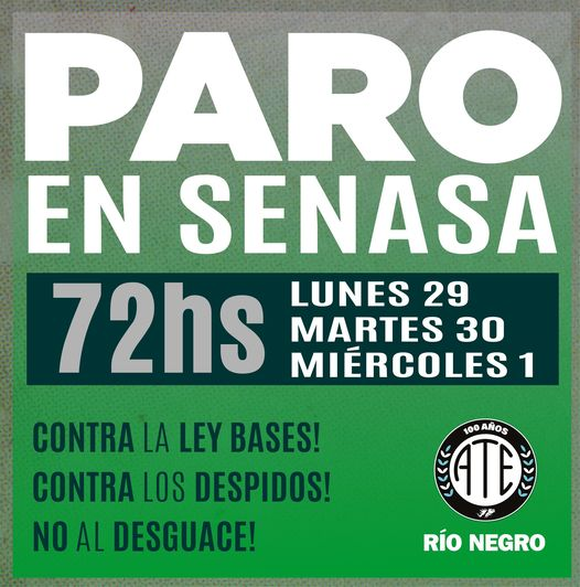 Paro en Senasa por 72 horas: con alta adhesión en Río Negro, ATE movilizó en Roca